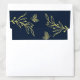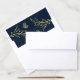 Unique simple wedding envelope featuring elegant gold flower and a butterfly on navy background