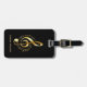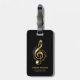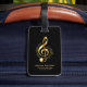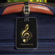 Modern shiny gold treble clef with notes on black background. Optional monogram