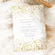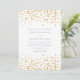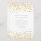 Chic faux gold confetti wedding invitation features an elegant faux confetti border, and simply classic design with touches of elegant blue calligraphy script typography.