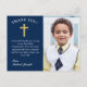 Offer a thank you to your family and friends after attending your child's First Holy Communion by mailing them this Simple Gold Cross Navy Blue First Holy Communion Thank You postcard. These 1st communion thank you postcards have a simple yet elegant gold cross against a dark navy blue background. Put your name and return address on the back for an easy sendout. Replace the photo with an image of your child and add a special note of thanks, along with a signature on the front.