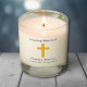 A simple and elegant candle with a gold cross and customizable texts. You can use it for a funeral or a funeral wake. If you change text, it could be also used for a baptism or any religious ceremony!