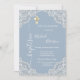 Simple Gold Cross Lace Baptism Dusty Blue Invitation