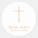 Simple Gold Cross Script Baptism Classic Round Sticker
