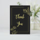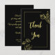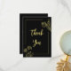 Unique simple wedding thank you card featuring romantic and elegant gold flowers on black background