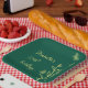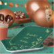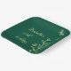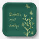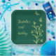 Unique simple wedding paper plate featuring romantic and elegant gold flowers and butterflies on emerald green background