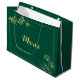 Simple gold flowers emerald green wedding large gift bag