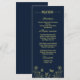 Unique simple wedding menu featuring romantic and elegant gold flowers on navy background