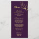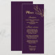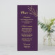 Unique simple wedding menu featuring romantic and elegant gold flowers on purple background