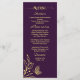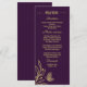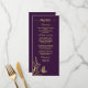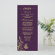 Unique simple wedding menu featuring romantic and elegant gold flowers on purple background