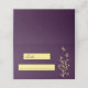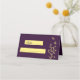 Unique simple wedding place card featuring romantic and elegant gold flowers and butterflies on purple background