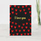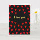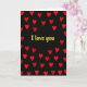 This card shows a deep black background filled with many red hearts arranged in a lively pattern, like they’re surrounding you with love. In the center, the words “I love you” stand out in textured gold lettering that looks slightly worn, giving it a warm, lasting feel. The gold text sits right in the middle, so your eyes go there first, and the hearts frame it on all sides. The hearts are all a similar shape and size, and their rich red color pops strongly against the dark backdrop. Together, the dark background and bright hearts create a strong contrast that feels direct and sincere. It’s a meaningful card to give when you want your feelings to be clear, whether it’s for a partner or someone you care about deeply. 🥰❤️