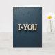 This card shows the words “I ❤️ YOU” centered on the front in raised, gold letters with a slightly worn look. The heart symbol is bright red and sits between “I” and “YOU,” making the message easy to spot right away ❤️. Behind the lettering is a deep midnight-blue background that looks like a rough, weathered wall with small bumps and grain. Soft light falls across the surface, creating gentle shadows that make the texture and the raised letters stand out. The gold letters feel like something kept and valued, as if the message has lasted through time. It’s a simple way to say what you feel without needing a long note, which can make it easier to be honest and close. Giving this card can feel meaningful because it’s direct, steady, and full of care 🥰. Hope it helps you share your Valentine’s Day feelings with someone special.