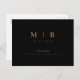 Simple Gold Monogram Black Save the Date Announcement Postcard