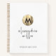 Modern Minimalist Glamorous Gold Metallic Emblem Black Initial Name Girly Script Professional Title Role Custom Text Template Plain White Background Monogram Notebook
