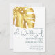 Plain white envelopes are included with paper invitations and will come to fit the invitation size you select. If you don’t need the envelopes, you may choose to not receive them by selecting the dropdown below "Envelopes" and choosing "None." If you’d like to have a design on your envelopes, you can browse all of these available envelopes to find the design that complements your Simple Gold Tropical Wedding Invitation.