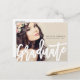 Modern script graduation announcement postcard. Completely customize all the information and photo .