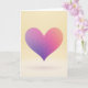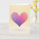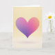 This greeting card shows a single heart centered on a pale, creamy yellow background. The heart shifts in color from deep indigo-purple at the bottom up through lavender and soft magenta to a blush pink at the top curves. A faint, soft shadow sits right under it, making the heart look like it’s gently floating. There isn’t any other artwork, so your eyes go straight to the heart and the calm space around it. There’s no text on the front, which makes it feel quiet, honest, and easy to give to anyone you care about 🥰. The smooth color change gives it a tender, comforting feel, like a small reminder that love can be simple and steady ❤️. It’s a meaningful choice when you want to say “I’m thinking of you” without needing a lot of words, and it’s perfect for sharing Valentine’s Day sentiments.