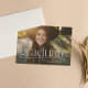 This one-photo graduation announcement features a full-frame photo with the word "graduate" in a simple but stylish lowercase type. This modern card also features room for the graduate's name, school and year or other details you want to share. The back is a charcoal gray with a subtle confetti or graduation cap pattern. The color can be adjusted by clicking "customize further."