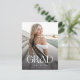 Celebrate a proud graduation moment with this modern minimalist photo graduation announcement postcard featuring a clean black white style and elegant typography. Designed for a high school or college grad, the simple layout keeps the focus on the graduate and their milestone achievement. Personalize the photo, name, and details to create a meaningful graduation announcement postcard for friends and family. Share the excitement and personalize yours today.