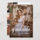 This modern graduation announcement and invitation allows you to highlight your favorite photos. With a gradient fill at the bottom, the white script will stand out over any photo. The back side is perfect to list the details of the ceremony or give an overview of your past year or future plans.