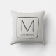 Simple Gray and Black Modern Monogram Throw Pillow.