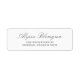 Modern return address labels featuring a simple design with your business name in an elegant gray thin script font and two lines of text for your return address in a serif font, over a white background. These minimalist return address labels are a great way to add a professional touch to your envelopes.