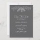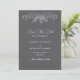 Embrace a sense of natural tranquility with this minimalist and modern invitation. The clean, centered layout is adorned with a delicate white line drawing of eucalyptus leaves with a simple gray background, symbolizing lasting love and growth. It's an elegant and balanced design for couples who appreciate refined, nature-inspired details. This rehearsal wedding invitation is part of a complete set.