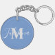 Simple Gray Script Monogrammed Blue Keychain