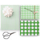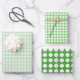 This simple green and white polka dots pattern has three sheets of a classic polka dot design with different color combinations. Use them to wrap coordinating gift boxes for a baby shower, birthday, or any other event where you want a clean and simple look.