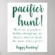 Simple pacifier hunt baby shower or gender reveal party sign featuring a fun, casual hand-lettered script. The classic design includes a modern handlettered quote typography overlay. For other colors or matching products, please visit the JustFharryn Zazzle store, or contact the designer, c/o Fharryn@yahoo.com All rights reserved. #bohochic #zazzlemade