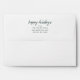 Simple Green Happy Holidays Card Envelope with Christmas Treen Pattern Interior and Return Address on Back Flap.