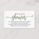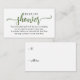 Cute bridal shower enclosure card featuring a simple and minimal design in green and black with "shower" in green script and a message asking your guests to leave their gift unwrapped. A display shower is the perfect way to celebrate in an eco-friendly way while allowing more time to spend with guests rather than opening gifts.