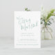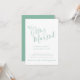 Modern simple muted green and white wedding invitations. Green script text on white front and a plain green back. Other matching wedding items and colors available. © Original design by www.mylittleedenweddings.com