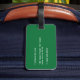 Elegant customizable green luggage tag with white circle and bold monogram.