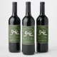 Simple Green & White Hand Drawn Bow Sketch Wedding Wine Label