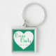 Simple green white heart customizable keychain