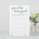 Simple "Guess that baby food" baby shower or gender reveal party guessing game card featuring a fun, casual hand-lettered script. The classic design includes a modern handlettered quote typography overlay. For other colors or matching products, please visit the JustFharryn Zazzle store, or contact the designer, c/o Fharryn@yahoo.com All rights reserved. #bohochic #zazzlemade