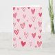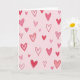This design shows a soft pastel pink background filled with many heart shapes scattered all over. The hearts come in different sizes and shades, from pale blush to deeper red, so your eyes keep moving around the card. Some hearts are just simple outline drawings with slightly uneven lines, while others are fully colored in with visible brush marks. A few look lightly washed with color, and others look more solid and rich, which adds a cozy, relaxed feel. There’s no text on the front, so the hearts do all the talking and leave space for your own words inside. It feels meaningful because it can fit romance, close friendship, or a sweet note to someone you care about 🥰. It’s an easy way to say “I’m thinking of you” with a little extra love ❤️, perfect for sharing Valentine’s Day.