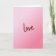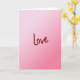 This card shows the single word “Love” centered on the front in dark crimson cursive lettering. The letters look slightly brush-textured, like they were written by hand, which makes it feel more personal and real. Behind the word is a smooth pink background that fades from a very pale, milky pink at the top to a deeper rose pink near the bottom. There are no characters or extra objects, so your eyes go straight to the message and the gentle color shift around it. The simple layout makes it easy to give to a partner, close friend, or anyone you care about, because it says a lot without trying too hard. “Love” sits right in the middle, standing out clearly against the soft pink tones, and the flowing letter style adds a tender feel 🥰. It’s a quiet way to say “I’m thinking of you” and “you matter to me,” especially on a day that can feel emotional ❤️.