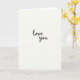 This greeting card keeps things simple, with the words “love you” as the main focus in dark, flowing lettering. The text sits right in the center of an off-white background that has a light paper-like texture. The letters curve smoothly, with a few thicker strokes and thinner lines that make it feel like it was written by a real person. There are no characters or extra objects, just lots of open space that lets the message stand on its own. The overall look is calm and gentle, like a quiet note you’d leave for someone you care about 🥰. Giving this card feels meaningful because it says what you want to say without any distractions or pressure. It works well for romance or close friendship, especially when you want your feelings to come across as honest and steady ❤️. Hope it helps you share your Valentine’s Day sentiments with someone special.