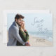 This modern horizontal save the date card features a photo frame that fills the front of the card. "Save the Date" appears in a stylish handwritten text over top of the photo. The backside offers custom text for your wedding website.