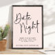 This sign invites guests to share date night inspiration for the happy couple with a black calligraphy script and two lines of custom text.