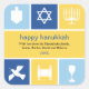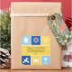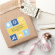 This sticker uses the icons of Hanukkah to convey warm wishes. The bright blue and gold colors surround icons of a dreidel, menorah, and kiddush cup, among others to frame your message. Great as envelope seals or for sticking on holiday packages or gifts. Available in alternate colors with matching products.