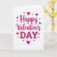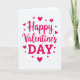 This greeting card features the words “Happy Valentine’s Day” stacked down the center on a white background. “Happy” and “Valentine’s” are written in fuchsia with smooth, flowing letters that feel friendly and romantic. “DAY” sits underneath in fuchsia too, using tall uppercase letters that make the ending feel strong and clear. Tiny fuchsia hearts are sprinkled around the words, and one heart even takes the place of the apostrophe in “Valentine’s.” The layout is simple, with lots of open space, so your eyes go right to the message. The bright pink against the white makes it feel cheerful and full of affection without needing any extra pictures. It’s a meaningful card to give because it says exactly what you want to say, and the little hearts add a sweet touch 🥰❤️.
