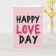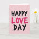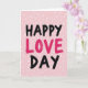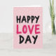 This greeting card centers on the words “HAPPY LOVE DAY” stacked in three lines down the middle. “HAPPY” at the top and “DAY” at the bottom are in black, with rough brush-like strokes and slightly jagged edges that make the lettering feel lively and human. “LOVE” sits between them in bright fuchsia pink, standing out right away as the warm heart of the message ❤️. The background is a soft pastel pink, and it’s sprinkled with small, irregular white dots like confetti scattered across the page. The text is big and easy to read, with a casual hand-lettered look that keeps it friendly rather than formal. The mix of pinks and black feels romantic without trying too hard, and it works for a partner or a close friend. It’s a simple way to say you care and to mark the day with a little extra affection 🥰—perfect for sharing Valentine’s Day sentiments.