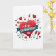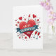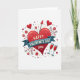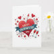 This greeting card shows a large, glossy red heart in the center, with a Cupid’s arrow running through it and striped red fletching at the end. A teal-blue ribbon wraps around the heart, adding a nice contrast and drawing your eye across the middle. On the ribbon, the words “HAPPY VALENTINE’S DAY” appear in white, neat all-caps lettering, and “2026” sits just below it on the ribbon. Behind the main heart, smaller deep red hearts and ruby-red flowers on dark branches peek out, like love is blooming all around. The white background is dotted with tiny gold diamond shapes, blue dots, and small purple stars that feel like confetti. In the lower right corner, two slim champagne flutes hold a red drink, hinting at a quiet toast together 🥰. It’s meaningful because it mixes classic romance symbols with a cozy, celebratory scene, making it easy to give to a partner or a close friend ❤️. Hope it helps you share Valentine’s Day sentiments with someone you care about.