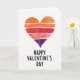 This design shows a large heart in the center made of horizontal color stripes that look like soft paint strokes. The top stripe starts in warm orange, then the colors shift through reds and gentle pinks as you move downward. Near the bottom, the heart fades into a deep purple, giving it a calm, steady finish. The white background stays plain, so the heart stands out and feels like the main focus. Under the heart, the words “HAPPY VALENTINE’S DAY” sit centered near the lower part of the card in black, brush-like all-caps letters. The slightly uneven paint texture makes the heart feel real and caring, like love that isn’t perfect but is true 🥰. It’s a meaningful card to give because it’s simple, warm, and fits romance or close friendship without trying too hard ❤️.