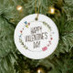 Lightweight, smooth, pure white ornament with nice sheen. Perfect size to be seen from across the room ... and to attract closer inspection! Price was great for ordering enough for the whole family! Clear, bold black design just as requested. Matches the order exactly. Just so nice!