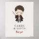 Direct your guests with style using this charming Harry Potter Gift & Cards Sign Design. Featuring the adorable, chibi-style wizard holding his wand, this sign perfectly guides attendees to where they should leave their cards and presents. The design offers a playful yet clear way to manage gifts, complemented by the warm, handwritten "thank you!" message. This fully customizable design ensures you can easily update the names or add a thank-you note relevant to your event before preparing the final sign. Make every part of your magical celebration seamless!