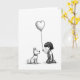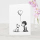 This card shows a young girl kneeling beside her white dog in the lower-right area of the front. The girl has a small pink blush on her cheek, and she holds a large heart-shaped balloon that floats up above them on a thin string. The balloon and most of the scene are in soft gray tones against a plain white background, which keeps your attention on their quiet moment together. The dog looks up at the heart with an eager, slightly open mouth, like it’s listening closely and ready to receive what she’s offering. A tiny blue charm on the dog’s collar adds a small touch of color that makes the pair feel even more real and close. There isn’t any text shown on the front, so the picture carries the whole message in a simple, gentle way. It feels meaningful to give because it’s about caring for someone and showing love through a small, thoughtful gesture 🥰❤️. Hope it helps you share Valentine’s Day feelings with someone you care about.